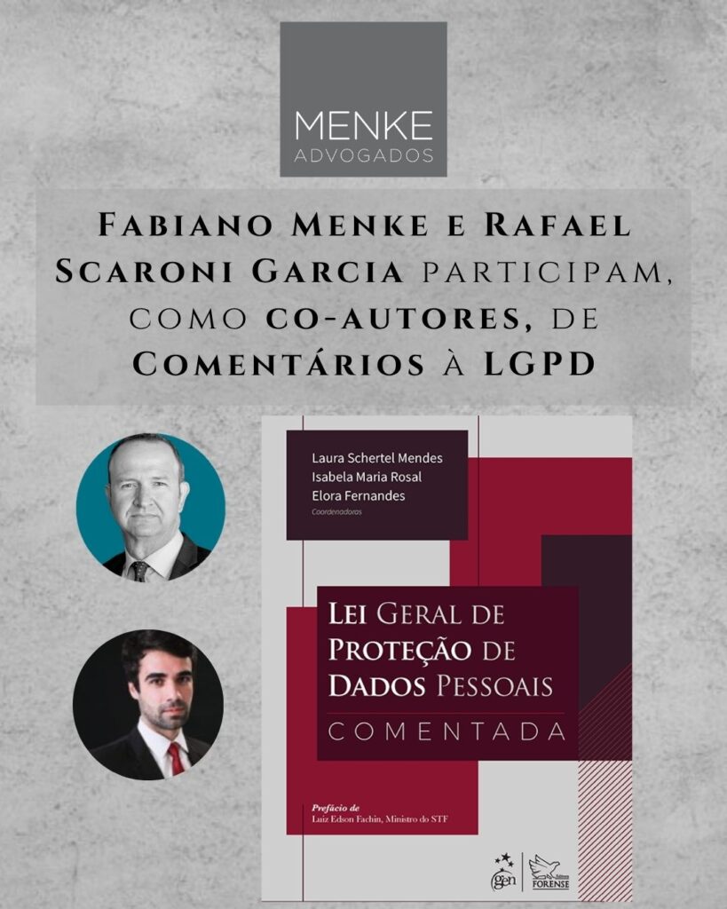 Os sócios Fabiano Menke e Rafael Scaroni Garcia participaram, como co-autores, do livro “Lei Geral de Proteção de Dados Pessoais Comentada”, coordenado pelas professoras Laura Schertel Mendes, Isabela Maria Rosal e Elora Fernandes.